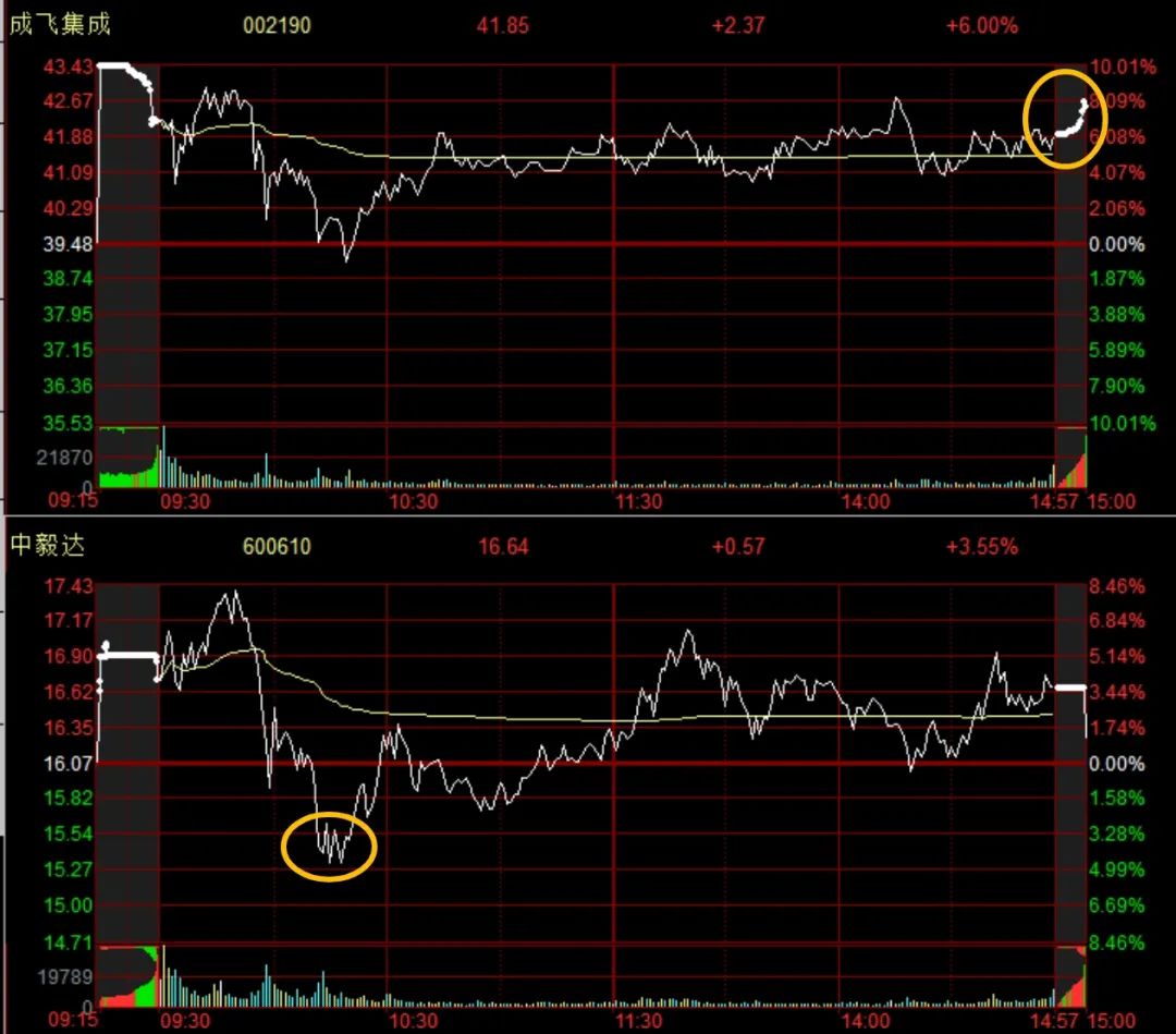 但是,市场的情绪很弱吗?也没有,成飞集成尾盘还有抢筹,中毅达下过水,今天也没跌停,尾盘甚至也是红盘报收。