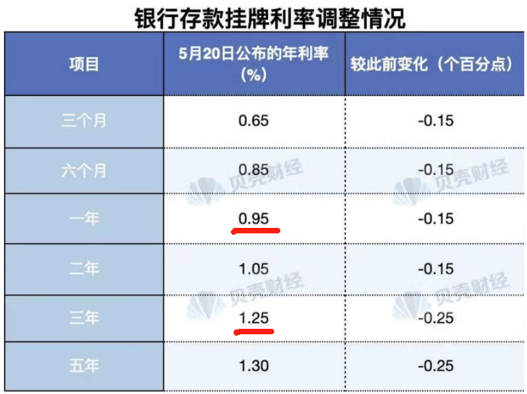 5月20日,记者了解到,多家国有大行存款今起降息,其中三年期和五年期存款均下调25个基点,三个月期、半年期、一年期、二年期均下调15个基点,活期利率下调5个基点。这是国有大行今年首轮存款利率下调。如果20万元存三年,降息25个基点后三年利息少1500元。(澎湃)
