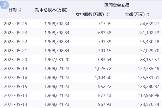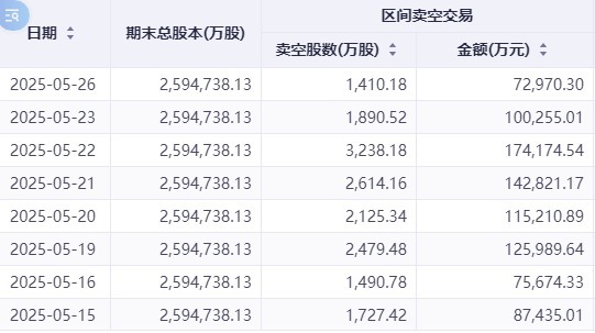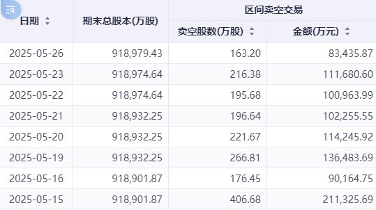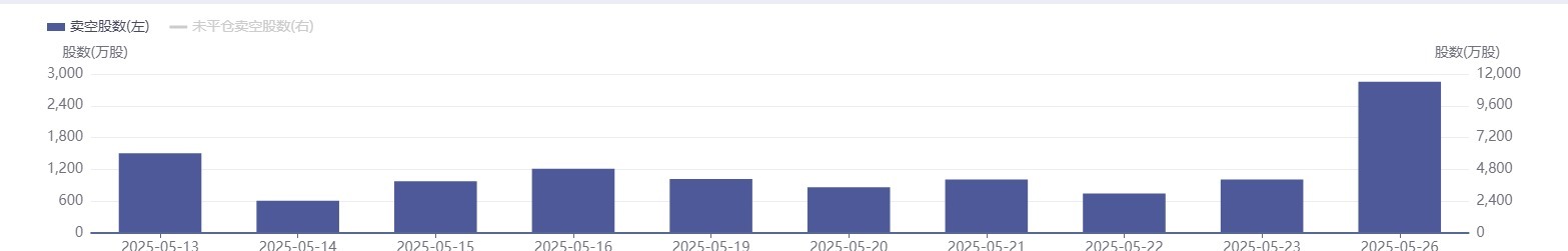 值得关注的是,美团的做空规模持续攀升,与市场整体趋势形成显著背离。数据显示,该股卖空股数从5月13日的1504.07万股激增至26日的2552.19万股,增幅达69.68%。
