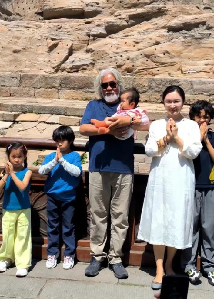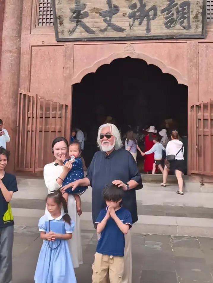 回到国内,他们一家又去了山西云冈石窟。8月13号,网友拍到他们站在古迹栏杆前,摆好姿势拍全家福。照片里,去年刚出生的小女儿“小龙珠”被张纪中抱在怀里,胖乎乎的,可惜没看镜头。杜星霖站在旁边,笑得温柔,夫妻俩看着状态都不错,网友直呼:这对夫妻真是越活越年轻!