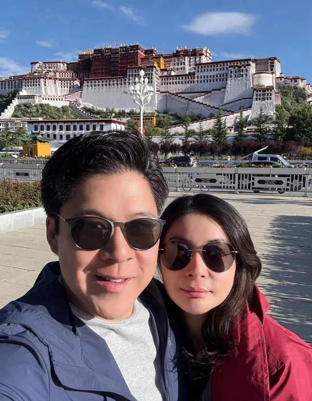 布达拉宫是他们这次的重头戏。两人换上蓝色藏服,站在宫殿前拍照留念。郭晶晶个子高,身材挺拔,往那儿一站,气场特别强。霍启刚站在旁边,笑呵呵地跟她击掌,动作有点像小弟给大姐点赞,夫妻俩的互动甜得像蜜。